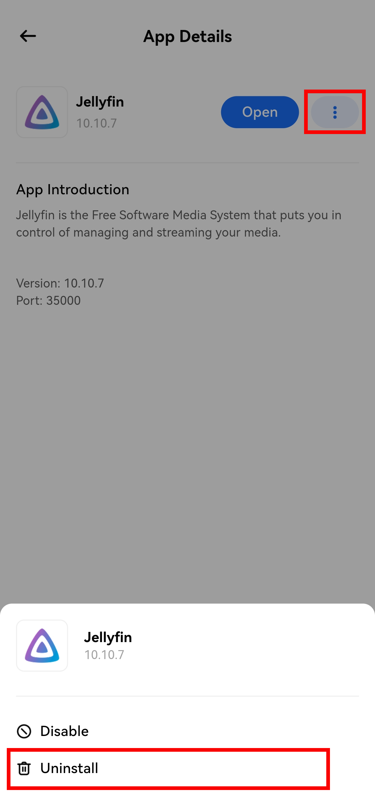 Issue: Prompted to Select a Server for Connection After Reinstallation After uninstalling Jellyfin, reinstalling it may not display the registration interface, and you will be prompted to select a server to connect to after launching. Solution: