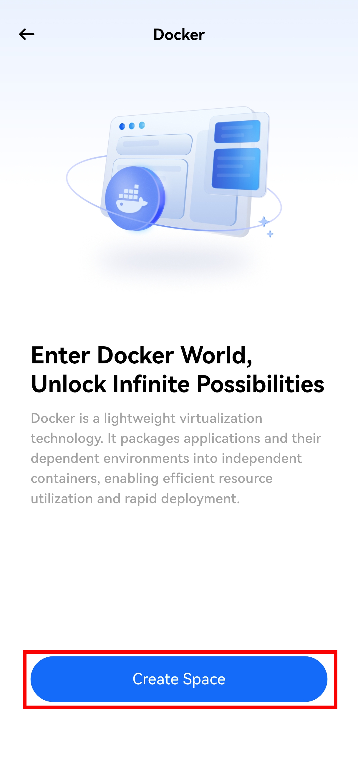 To install a container app for the first time, you need to initialize Docker-related settings and allocate storage space.