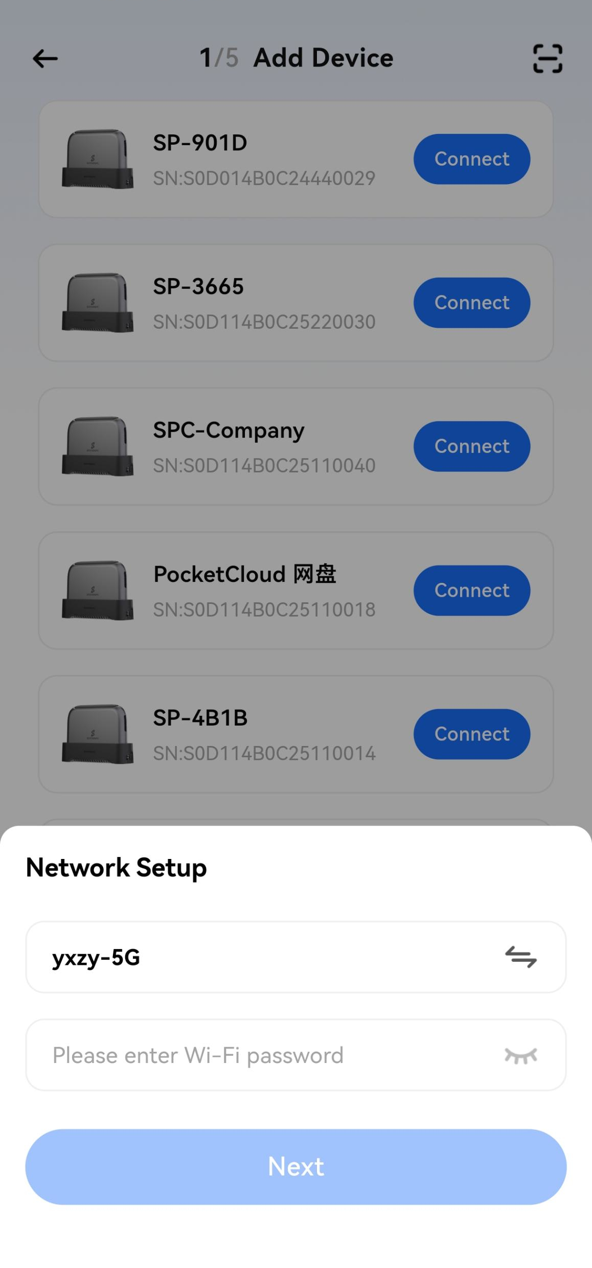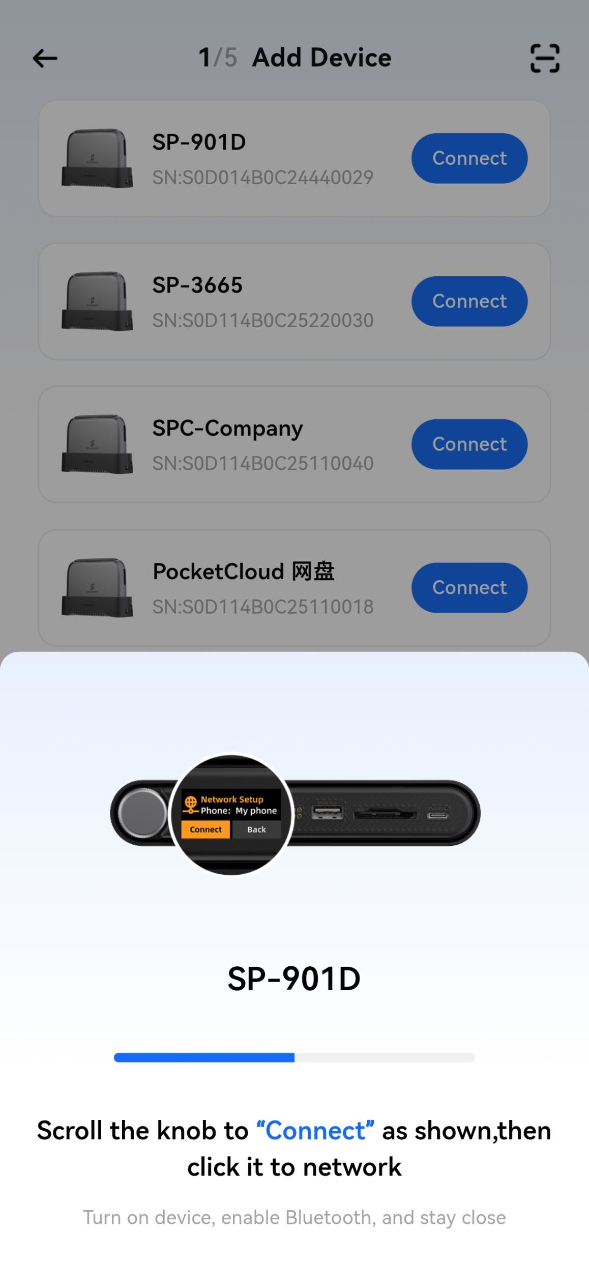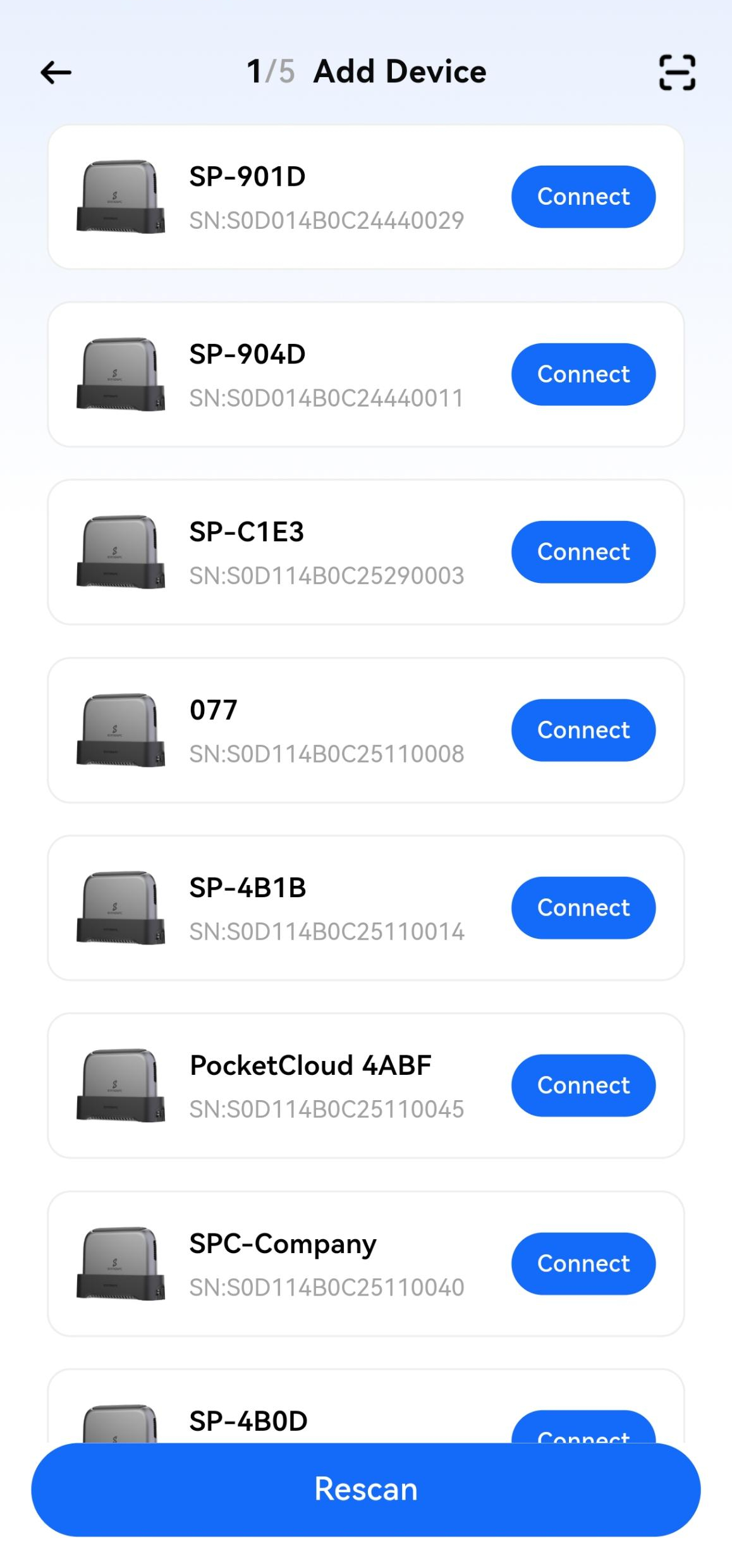 - Navigate to the scanned device list, select your device, and confirm the action on the PocketCloud device to start initialization.