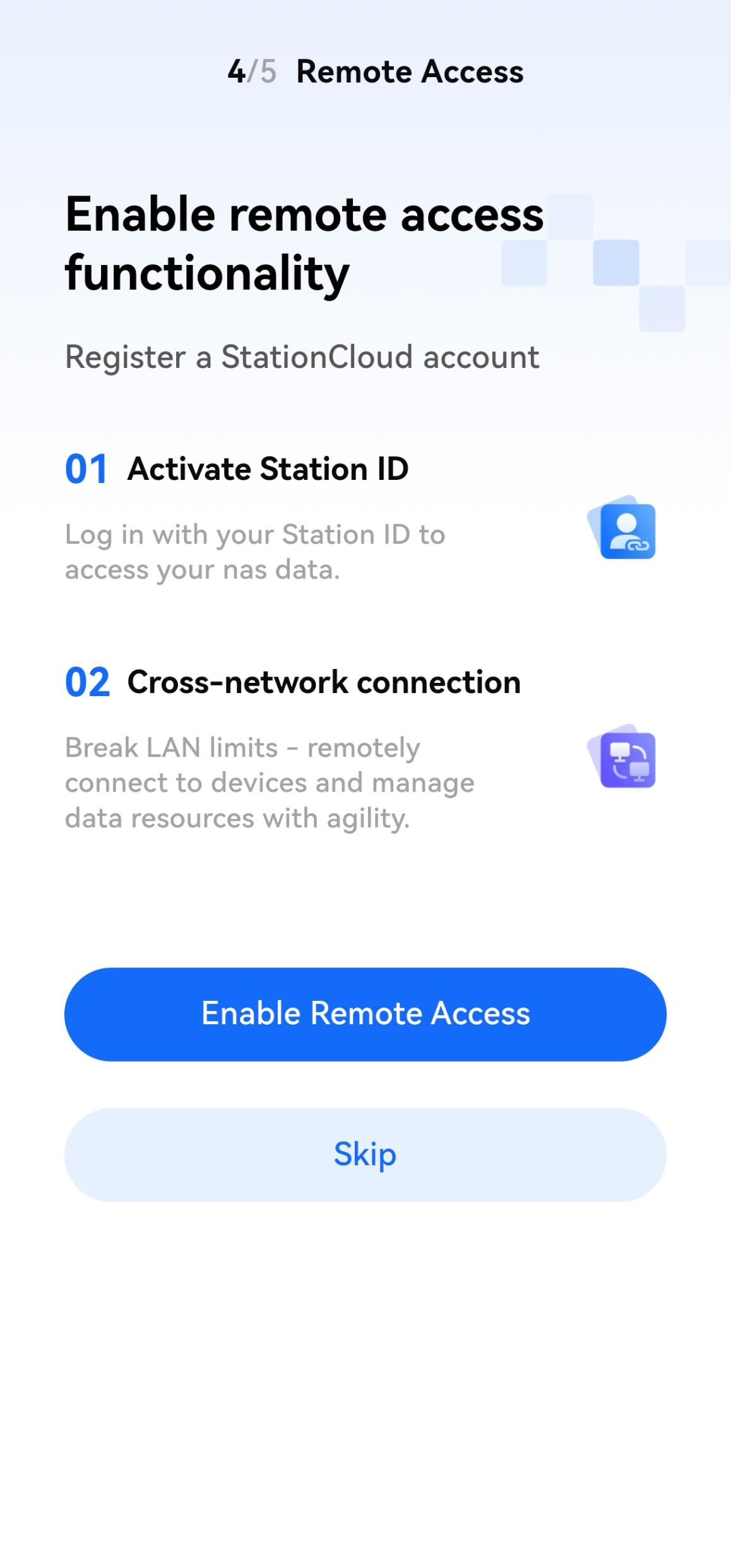 - Configure remote access (optional; you can enable it later in User Management on the Devices page).